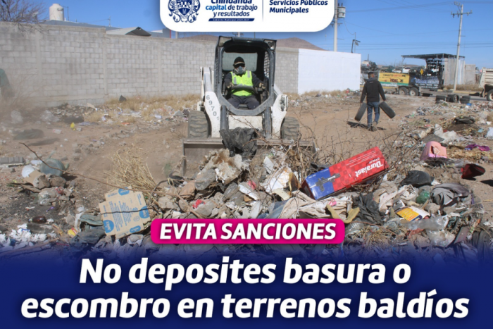 Con el objetivo de mantener una buena imagen urbana, el Gobierno Municipal a través de la Dirección de Servicios Públicos Municipales, exhorta a la población en general a evitar tirar basura o escombro en viviendas abandonadas y terrenos baldíos de la ciudad.Lo anterior, ya que esto genera además de una mala imagen urbana y entornos para la proliferación de fauna nociva para la salud de las familias, lo que provoca que se conviertan en un foco de infección.