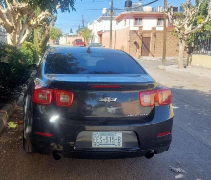 Chihuahua, Chih.- Autoridades piden ayuda para ubicar un Chevrolet Malibu LTZ, color negro, placas EES-515-B, que fue robado hace unos dias en zona residencial.La víctima ya compartió en redes sociales una fotografia de su unidad, solicitando que cualquier pista sea reportada de inmediato para tratar de recuperar el vehículo.