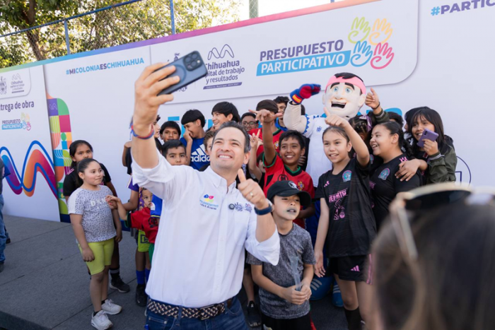 Chihuahua, Chih.- Gracias al trabajo de todos los vecinos de la colonia Rubio que acudieron a votar en la consulta del Presupuesto Participativo, fue posible que el día de ayer por la tarde, el alcalde Marco Bonilla hiciera entrega del parque y canchas de la zona totalmente remodeladas.