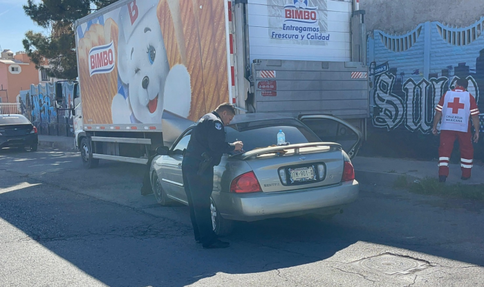 El percance provocó daños totales en el automóvil compacto, mientras que el camión presentó afectaciones menores.