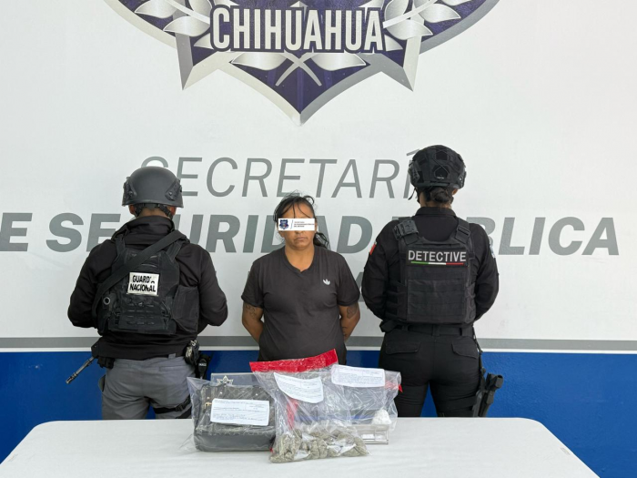 Chihuahua, Chih.- El Grupo Especial de Detectives de la Secretaría de Seguridad Pública del Estado (SSPE), detuvieron la tarde de este sábado, a una mujer en posesión de presunta marihuana y metanfetamina en la colonia Kilómetro 29, de Ciudad Juárez.Los hechos ocurrieron alrededor del mediodía día, cuando elementos de la Policía Estatal, realizaban labores de vigilancia en las calles Batalla de Álamos.