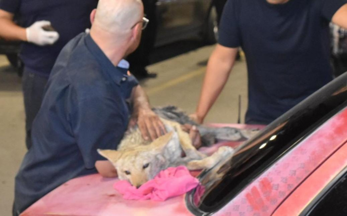 Rescata conductor a coyote atropellado