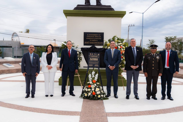Chihuahua, Chih.- En el marco de la celebración del Día de las Maestras y los Maestros 2025, el alcalde Marco Bonilla, encabezó el izamiento a la bandera y la ceremonia de Reconocimiento al Maestro Ilustre en la Rotonda del Maestro Ilustre, mismo que se entregó al profesor y doctor Alfonso Luján Sánchez, por su destacada trayectoria educativa y humana.