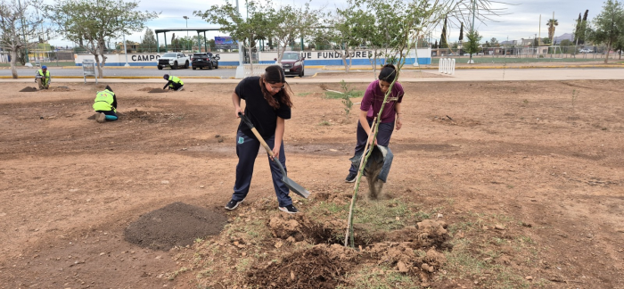 Chihuahua, Chih.- El Gobierno Municipal, a través de la Dirección de Mantenimiento Urbano, junto con alumnos del Colegio de Bachilleres de Chihuahua (COBACH) Plantel 8, reforestó con 35 árboles el emblemático parque La Huerta Legarreta.Los ejemplares plantados son de especie Palo Verde, misma que es endémica de Chihuahua Capital, ya que es apta para este tipo de tierra y necesita de poca agua para sobrevivir.