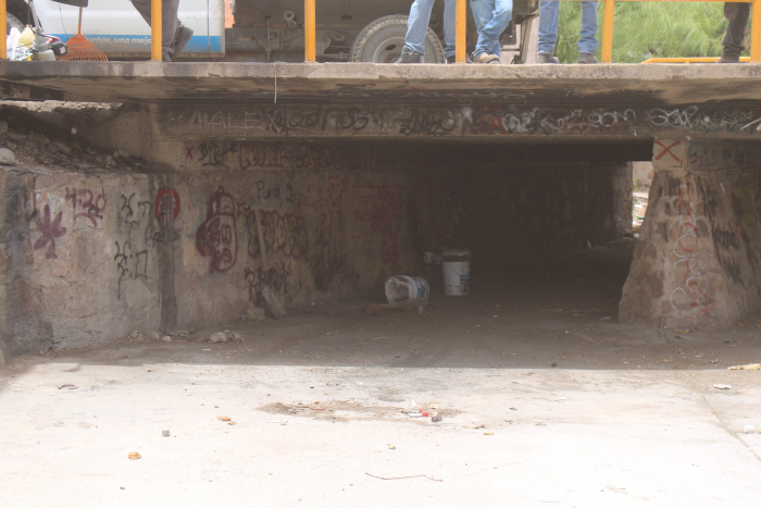 El Gobierno Municipal, a través de la Dirección de Servicios Públicos Municipales, realizó un operativo en conjunto con elementos de la DSPM para retirar acumulación de basura y tiliches de bajo puente invadido en la colonia Granjas, en la intersección de las calles Fresno y Velázquez de León, de donde se retiraron 3 mil 600 kilos de basura acumulada por invasores.Esto, luego de que vecinos de los puntos reportaron a personas que se concentraban ahí para pernoctar e intoxicarse, por lo que la Dirección de Seguridad Pública Municipal solicitó el apoyo a la Dirección de Servicios Públicos Municipales para el retiro de lo que ahí se había acumulado.