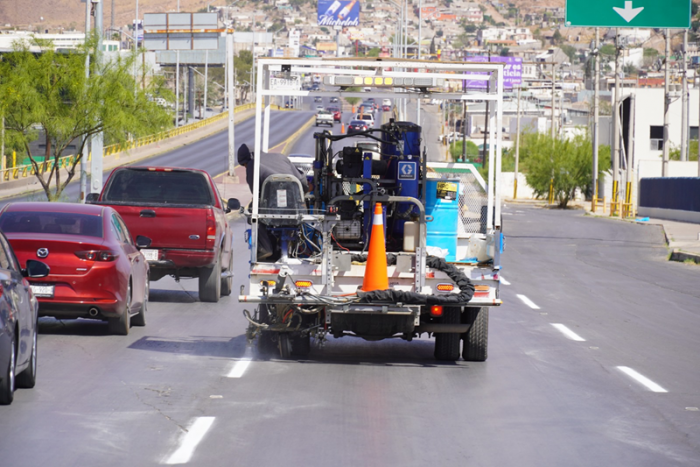 El Departamento de Mantenimiento Vial de la Dirección de Obras Públicas Municipales, delimitó los carriles del tramo que inicia en el boulevard Juan Pablo II a la calle Pedro Meoqui, en ambos sentidos para seguridad de quienes a diario conducen por esta vía.