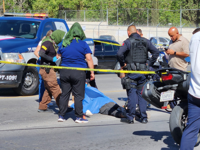 Chihuahua, Chih.- Un hombre de aproximadamente 45 años murió al ser arrollado por una camioneta de carga tipo Peugeot Partner cuando intentaba cruzar la avenida Pacheco, a la altura de la calle Jesús García. El impacto lo proyectó contra un vehículo Toyota Yaris que circulaba junto a la unidad.De acuerdo con el informe preliminar, el peatón se atravesó de forma repentina, impidiendo que el conductor frenara a tiempo. Paramédicos de URGE llegaron al sitio, pero ya no encontraron signos vitales en la víctima.