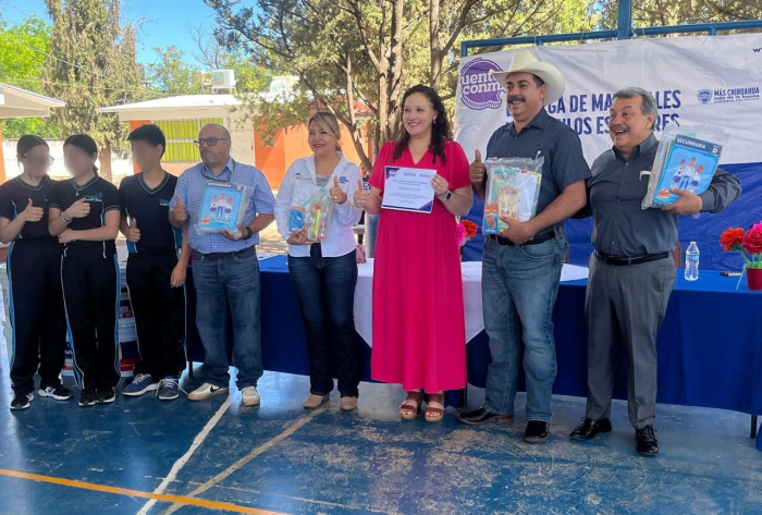 CHIHUAHUA, Chih.- Con el objetivo de apoyar la economía familiar y fortalecer el acceso a la educación, la Secretaría de Educación y Deporte (SEyD) entregó tenis y paquetes de útiles escolares a más de 2,200 estudiantes de nivel básico en los municipios de Santa Isabel y Riva Palacio.