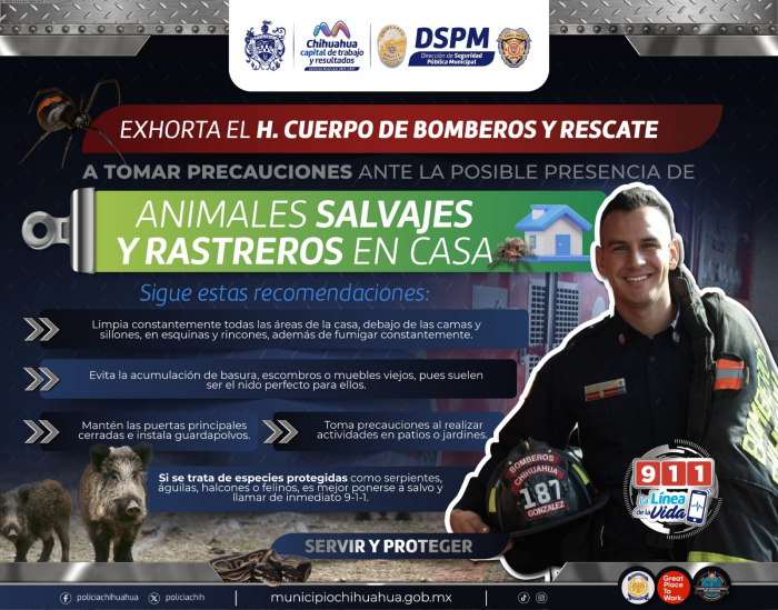 Por la llegada de las primeras lluvias y a las altas temperaturas, el Heroico Cuerpo de Bomberos y Rescate del Municipio, pide a la comunidad tener precauciones con la aparición de animales silvestres, rastreros y/o ponzoñosos que suelen llegar a los hogares en busca de agua o refugio.Serpientes, arácnidos, ratones, escorpiones y otros insectos, son las principales especies que se avistan en el interior y exterior de las viviendas, por ello es importante realizar ciertas acciones preventivas, para evitar picaduras o mordeduras, muchas veces causantes de lesiones o incluso hospitalizaciones.