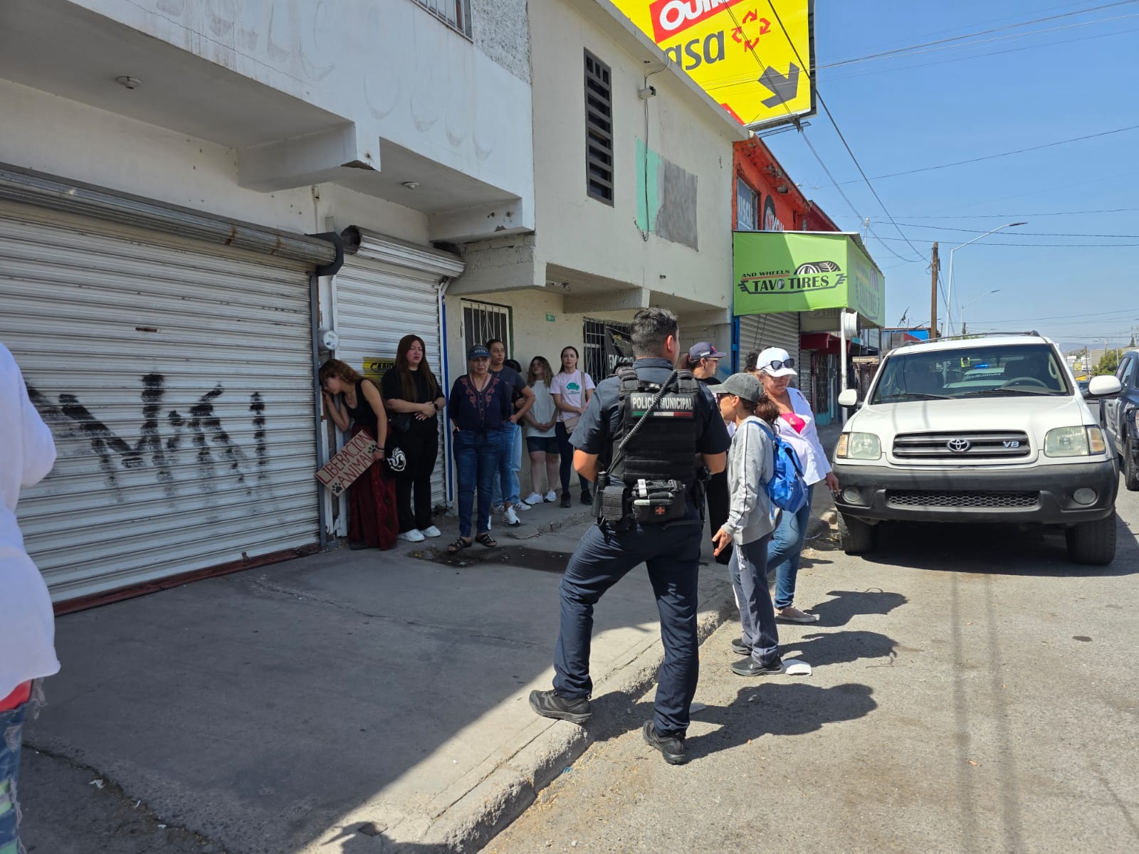 Chihuahua, Chih.- La avenida Flores Magón fue escenario de una intensa confrontación entre activistas y el dueño de un local, señalado por tener en malas condiciones a decenas de perros de raza. La protesta, encabezada por el colectivo El Álamo de Sazu, bloqueó la vialidad durante varios minutos, exigiendo el rescate de los animales.