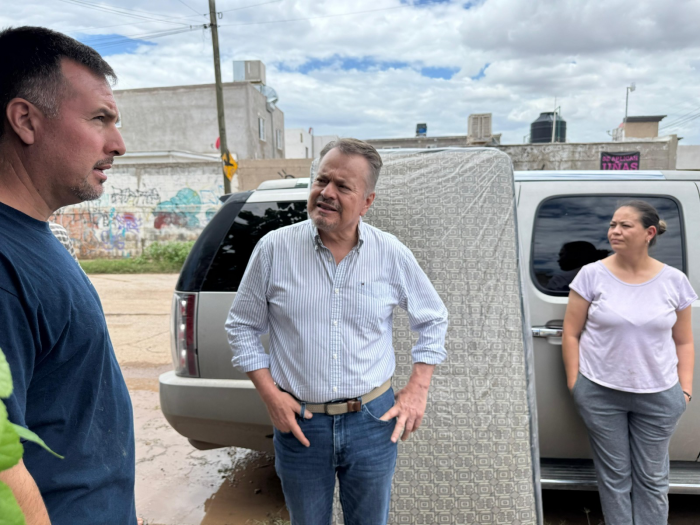 Por FELAChihuahua, Chih.- Continuando con las actividades de apoyo a las familias afectadas por las lluvias, el Senador Mario Vázquez Robles recorrió la colonia La Galera, al suroriente de la ciudad de Chihuahua, donde también hizo entrega de colchones y artículos de higiene personal.