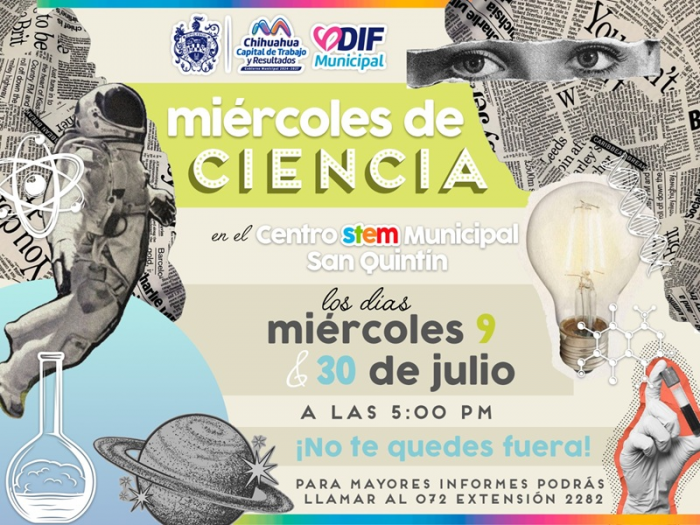 Chihuahua, Chih.- El Gobierno Municipal de Chihuahua, a través del DIF, invita a las niñas, niños, adolescentes y jóvenes, así como a sus familias a participar en los “Miércoles de Ciencia", en el Centro STEM Municipal San Quintín.