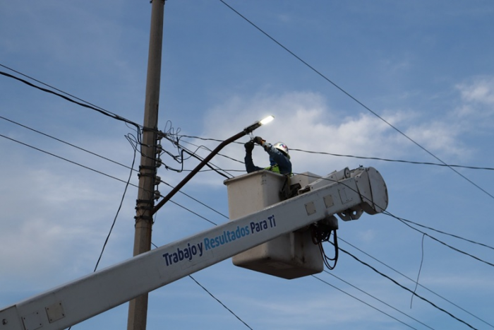 El personal de la Subdirección de Alumbrado Público debidamente identificados con chalecos antirreflejantes y grúas rotuladas, son los encargados de estar realizando las labores de cambio de luminarias antiguas de vapor de sodio por nuevas de tecnología LED, las cuales brindan mayor amplitud de luminosidad y ahorro de energía.