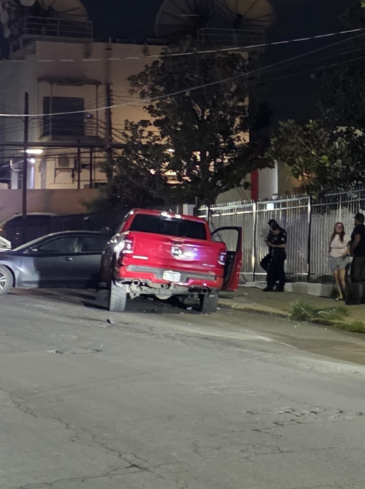Chihuahua, Chih.- Un conductor de una pick-up RAM roja perdió el control al circular sobre la calle Ernesto Talavera, impactando primero contra un Mazda del mismo color y después contra un vehículo estacionado frente a una vivienda. El accidente dejó cuantiosos daños materiales en ambas unidades.De acuerdo con testigos, el percance ocurrió a la altura de la calle Amado Nervo, donde la camioneta salió proyectada tras el primer choque. Los propietarios, alertados por el estruendo, salieron de inmediato y al ver la escena llamaron a los números de emergencia.