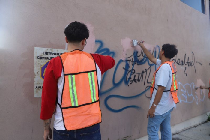 Chihuahua, Chih.- La Unidad de Atención a Pandillas de la Dirección de Seguridad Pública Municipal (DSPM), implementa acciones de prevención y reintegración social, mediante el trabajo directo con jóvenes para resarcir los daños que han cometido con pintas y grafitis en distintos puntos de la ciudad o han sido detectados cometiendo faltas al bando de buen gobierno.