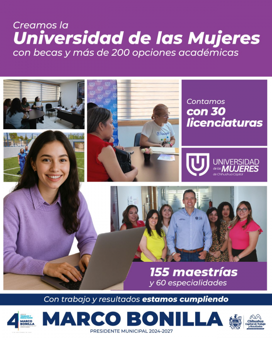 El edil destacó la Universidad de las Mujeres, un programa en línea con más de 200 opciones académicas, inscripción gratuita y becas de hasta el 80%, respaldado por la Organización Mundial de Alfabetización (WLO). El modelo permite que quienes estudian también puedan trabajar y atender a sus familias.