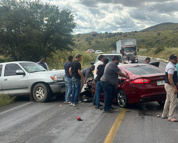 Chihuahua, Chih.- Un choque de frente se registró en el kilómetro 6 de la carretera libre a Juárez, en la zona conocida como curvas del Perico, donde dos vehículos particulares colisionaron.Las unidades involucradas fueron un Ford Fusion y una Toyota Tundra. Hasta el momento no se ha determinado la causa del impacto ni quién sería el responsable del accidente.