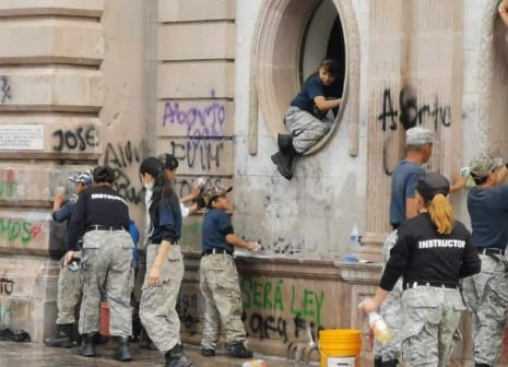 Ayer organizaciones de la Sociedad Civil, agrupaciones de jóvenes y adultos mayores se dieron a la tarea de limpiar el desorden, limpiar las pintas, pero más que nada fue un grito de un ya basta y la única que puede hacer eso, es la autoridad.