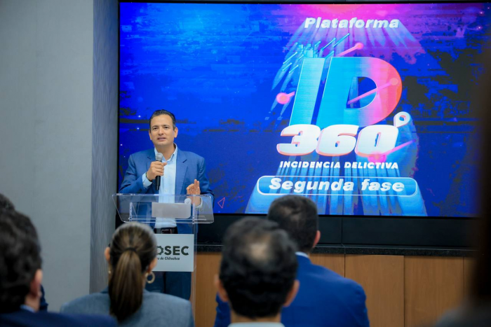 Chihuahua, Chih.- El alcalde Marco Bonilla participó en el lanzamiento de la segunda fase de la plataforma ID 360, una herramienta desarrollada por FICOSEC que convierte la información delictiva en decisiones estratégicas para mejorar la seguridad en el estado. Esta nueva etapa incluye más indicadores, mejor navegación y datos actualizados sobre accidentes viales en la capital.Durante el evento, Bonilla destacó que esta plataforma es una muestra de cómo la tecnología y la colaboración ciudadana pueden transformar la forma de gobernar: “Los datos sustituyen a las especulaciones y la colaboración vence a la desconfianza”, afirmó. ID 360 está disponible para todo el público y permite conocer cuándo y dónde ocurren los delitos, ayudando a construir un Chihuahua más seguro e informado.