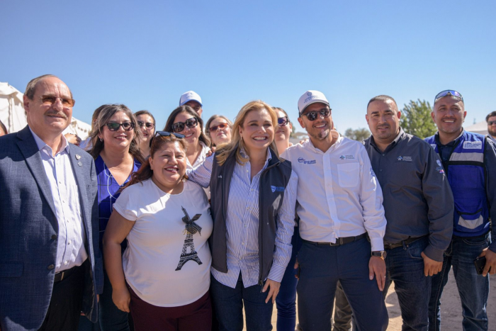 La gobernadora Maru Campos supervisó en Ciudad Juárez los avances de la primera de tres etapas, de la introducción de la Red de Agua Potable en el ejido El Sauzal, que una vez concluida en su totalidad, beneficiará a más de 1,700 familias.