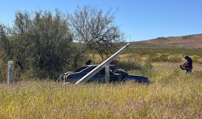 Chihuahua, Chih.- Un accidente en el kilómetro 175 de la carretera Chihuahua-Delicias dejó como saldo daños materiales y una mujer con lesiones leves, luego de que el vehículo que conducía saliera del camino y se impactara contra un poste de concreto.El percance ocurrió cuando uno de los neumáticos del Nissan Sentra que manejaba la mujer se reventó, provocando que perdiera el control y se saliera de la cinta asfáltica. El impacto contra el poste generó daños considerables en la parte frontal del automóvil.