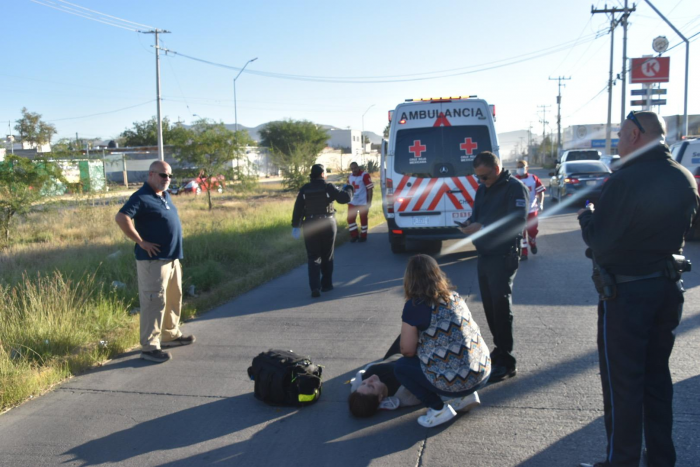 Chihuahua, Chih.- Una mujer resultó lesionada luego de ser atropellada en el cruce de la avenida Imperio e Hidroeléctrica de Chicoasén. Paramédicos de la Dirección de Seguridad Pública Municipal llegaron como primeros respondientes y le brindaron atención inmediata, antes de que la Cruz Roja la trasladara a un hospital.De acuerdo con el reporte, la responsable conducía un Kia Optima y afirmó que el accidente ocurrió porque el reflejo del sol le impidió ver a la peatona. Elementos de la Policía Vial arribaron para hacerse cargo del peritaje y deslindar responsabilidades.