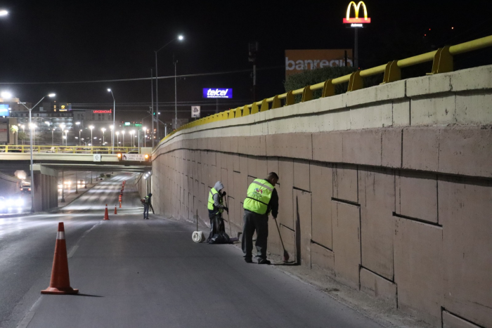 El Gobierno Municipal de Chihuahua inició trabajos nocturnos de limpieza en puentes, gazas y avenidas principales de la zona norte, con el fin de mejorar la imagen urbana sin afectar el tráfico. Las labores se realizan de 9:00 de la noche a 3:00 de la mañana e incluyen barrido manual, retiro de basura, corte de maleza y lavado de estructuras con hidrolavadora.
