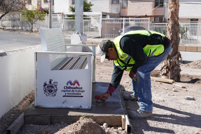 Por RedacciónChihuahua, Chih.- Con un avance del 85%, el Municipio continúa la rehabilitación del parque ubicado entre Nueva Vizcaya y Álvaro Núñez en la colonia Mármol I. La obra se ejecuta gracias al Presupuesto Participativo, mediante el cual mil 700 vecinos votaron por esta mejora.