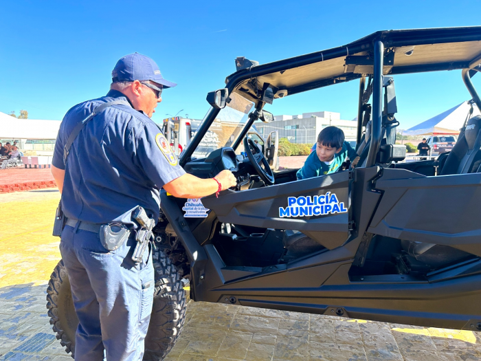 Elementos de la Dirección de Seguridad Pública Municipal (DSPM), compartieron con las familias chihuahuenses un poco de su gran labor diaria durante una exhibición de seguridad en las instalaciones de El Palomar.Las y los visitantes tuvieron la oportunidad de conocer cómo trabajan desde las distintas áreas, la razón del porte de su uniforme, equipo táctico, además de las tecnologías, unidades y herramientas de las que se apoyan para vigilar y prevenir la comisión de delitos en la ciudad.