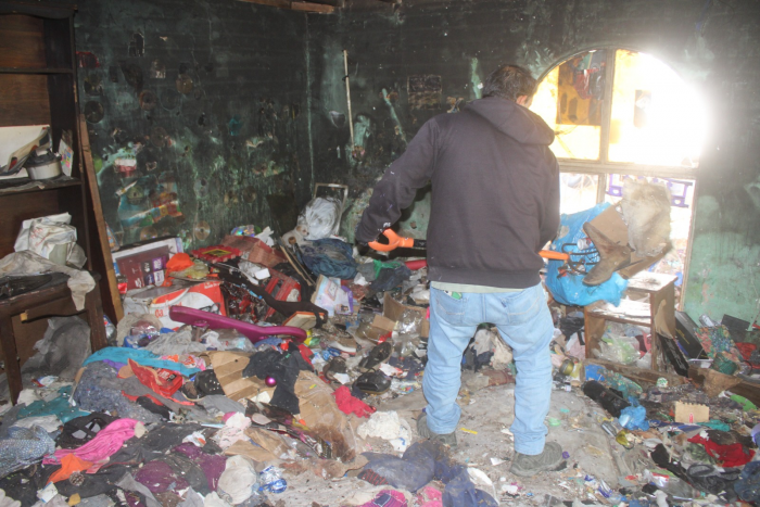 Posteriormente, se comenzaron con los trabajos de limpieza del domicilio, de donde se retiraron pertenencias dañadas por el fuego como ropa, muebles, entre otras.