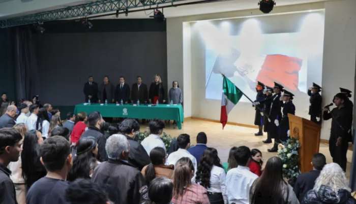 La ceremonia de graduación se realizó en el auditorio del Plantel 8 con la presencia de representantes de las instituciones aliadas, así como madres y padres de familia, quienes acompañaron a los graduandos en este logro académico.
