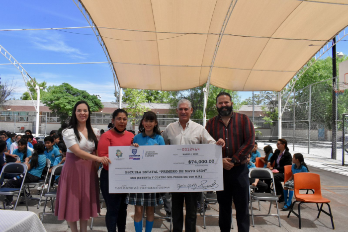 Entrega Mario Rodríguez apoyo a niña diputada en Escuela Primero de Mayo