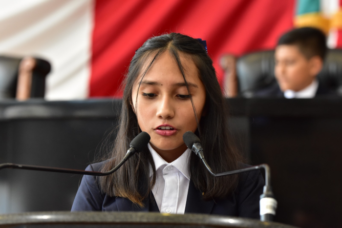 En el acto Solemne, por lo que los niños tomaron la Tribuna del Congreso para exponer sobre las situaciones o problemáticas que aquejen su entorno escolar y social. En este sentido, sobresalieron las peticiones para que se otorguen más becas educativas, se garantice la seguridad de las y los menores dentro y fuera de los planteles escolares, así como alumbrado público, pavimentación y transporte (principalmente en las zonas serranas y de la periferia), así como el mejoramiento de la infraestructura educativa.