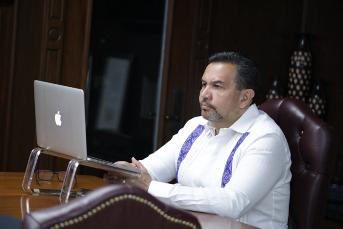 Ciudad Juárez, Chih.- El Presidente Municipal, Cruz Pérez Cuéllar, participó hoy en un diálogo, a través de una plataforma digital, con Rosa Isela Rodríguez Velázquez, titular de la Secretaria de Seguridad y Protección Ciudadana del Gobierno Federal y con representantes de 15 municipios de distintas regiones del país con atención prioritaria en temas de seguridad.