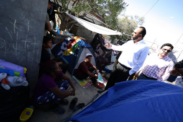 El campamento está ubicado en la calle Moctezuma y David Herrera Jordán y cuenta con dos "galerones" que ofrecen resguardo a las familias migrantes.