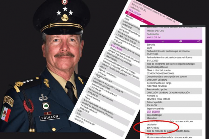 Entre los casos que destacan, se encuentra el de Cesáreo Raúl Emilio Foullon Van Lissum, hermano del subsecretario de la Defensa Nacional, André Georges Foullon Van Lissum, quien con un nivel de escolaridad de Licenciatura en Administración de Empresas, desempeña actualmente el cargo de Director General de Administración de la Autoridad Educativa Federal en la Ciudad de México con un sueldo neto de $ 967,346.00 pesos mensuales.