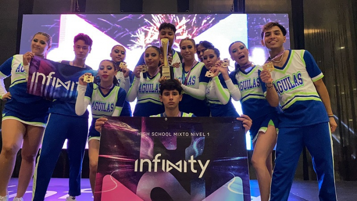 El grupo de porristas de la Preparatoria Estatal Maestros Mexicanos No.8422, integrado por 7 alumnas y 5 alumnos, obtuvo el primer lugar en la XVIII edición del Campeonato Nacional Infinity 2023, competencia que se realiza de manera anual por ASMEX Cheer & Dance.