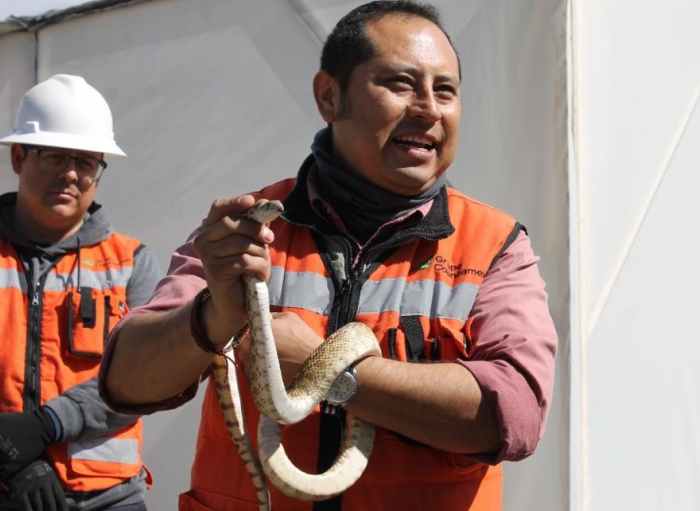 Una capacitación poco común; serpientes en condiciones de hábitat natural son manejadas para su reubicación y preservación, son parte del medio natural y el reto es mantener el equilibrio ecológico.