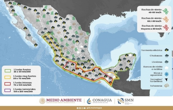 La dependencia estatal hace el exhorto a la población a tomar precauciones ante posibles crecidas de ríos y arroyos, así como mantenerse informado sobre las condiciones del tiempo.