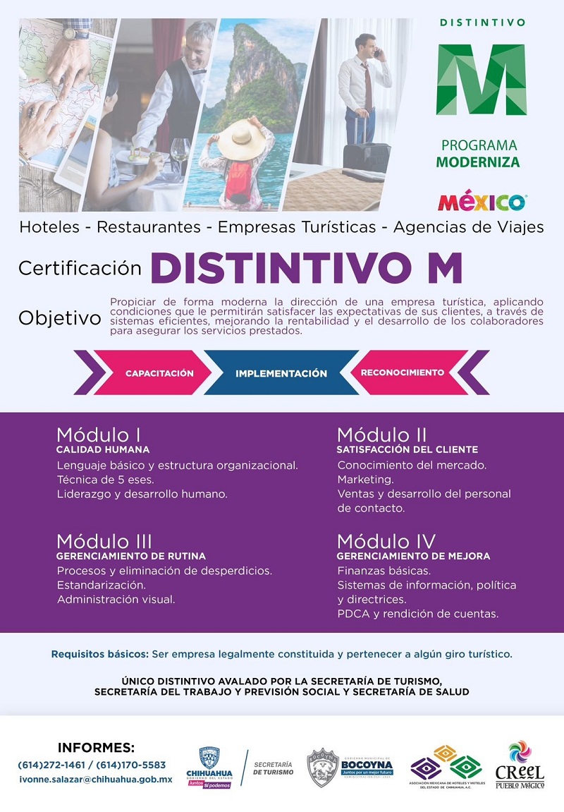 Chihuahua, Chih.- La Secretaría de Turismo dio a conocer que se encuentran abiertas las convocatorias para obtener el Distintivo Punto Limpio y el Distintivo M, por lo que extiende la invitación a los empresarios para que se acerquen a la dependencia, a fin de obtener estas acreditaciones.