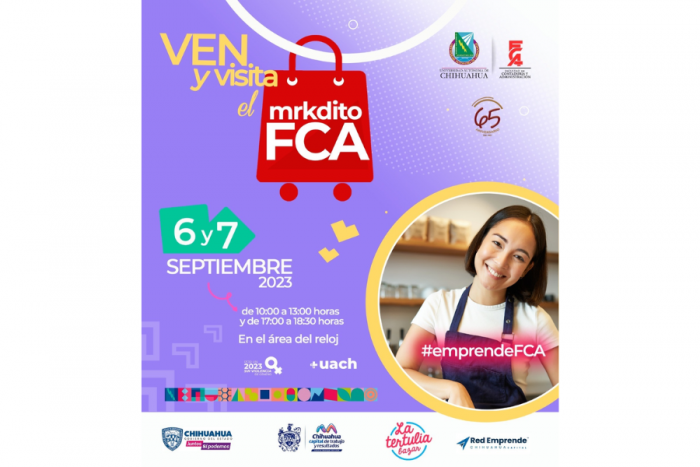 Chihuahua.- Para el alcalde Marco Bonilla es importante el desarrollo económico y el apoyo a los emprendimientos de las y los jóvenes universitarios, por ello el Gobierno Municipal de Chihuahua, invita a visitar el “Mrkdito FCA” de la Universidad Autónoma de Chihuahua (UACH) este 6 y 7 de septiembre.El Mrkdito FCA es una feria de emprendimiento en la que los alumnos de la Facultad de Contaduría y Administración de la UACH que cuentan con emprendimientos propios expondrán sus negocios a la comunidad universitaria y al público en general.