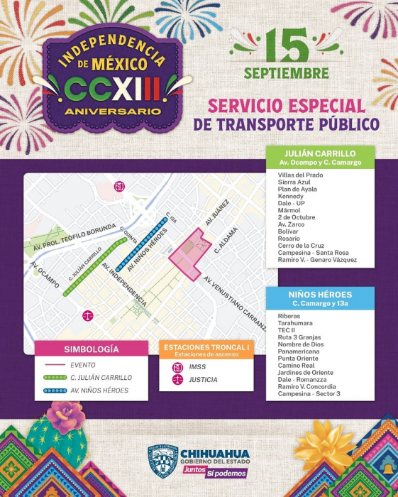 Para el viernes 15 de septiembre, a partir de las 13:00 horas las rutas Zarco, Martín López, Esperanza y Zootecnia, Mármol y Komatsu, circularán por avenida Independencia, hasta la Niños Héroes.