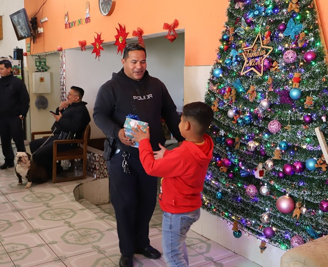 Chihuahua.- Como lo han venido realizando desde años atrás, agentes de la Policía Municipal unieron esfuerzos, pero sobre todo sus corazones y voluntad para llevar un poco de felicidad en estas fiestas decembrinas a niñas, niños y familias de escasos recursos que no cuentan con lo suficiente para recibir un regalo y pasar una Navidad como la mayoría de las personas lo hace.