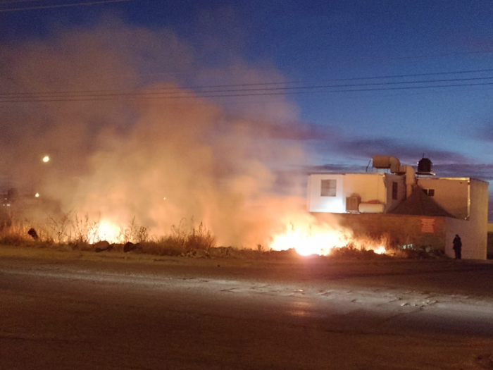 Chihuahua, Chih.- Esta noche se registró un fuerte incendio al sur de la ciudad en la colonia Paseos de Camino Real, lo cual movilizó a elementos de la policía y bomberos.Los hechos se registraron en un lote baldío a un costado de varias viviendas y de una gasera, lo cual causó pánico entre los vecinos.