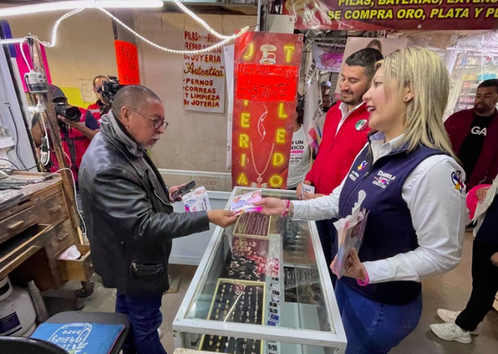 Chihuahua, Chih.- La candidata al Senado de la República por la coalición “Fuerza y Corazón”, Daniela Álvarez, recorrió este viernes los mercados Cuauhtémoc y Reforma ubicados en la zona centro de Ciudad Juárez, para visitar a los comerciantes y presentar sus propuestas de campaña.