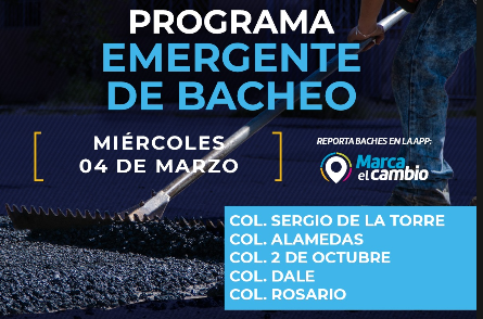 Cinco zonas tendrán bacheo este miércoles 4 de marzo