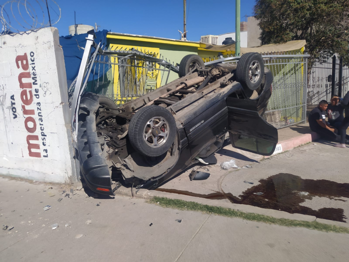 Chihuahua, Chih.- Al sur de la ciudad de Chihuahua se reportó un aparatoso accidente después de que dos vehículos se encontraban jugando carreras.