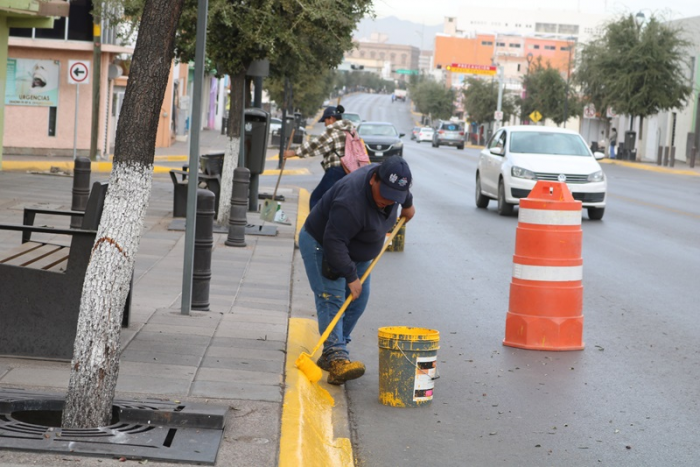 Chihuahua, Chih.- Con el objetivo de mantener una buena imagen urbana, el Gobierno Municipal, a través de la Dirección de Servicios Públicos y Obras Públicas, trabaja en la pintura de guarniciones...