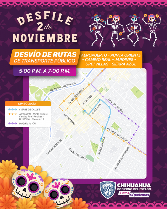 La Secretaría General de Gobierno anuncia los cambios temporales en las rutas de transporte público que circulan por las principales calles del recorrido del desfile del Festival del Día de Muertos este jueves 2 de noviembre a...