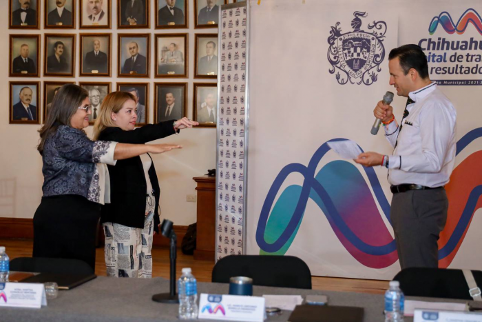 Chihuahua, Chih.- El alcalde de Chihuahua Marco Bonilla Mendoza encabezó la toma de protesta de Martha González Rentería y de Alma Cristina Treviño Olivas, presidenta y vicepresidenta, del Comité de...